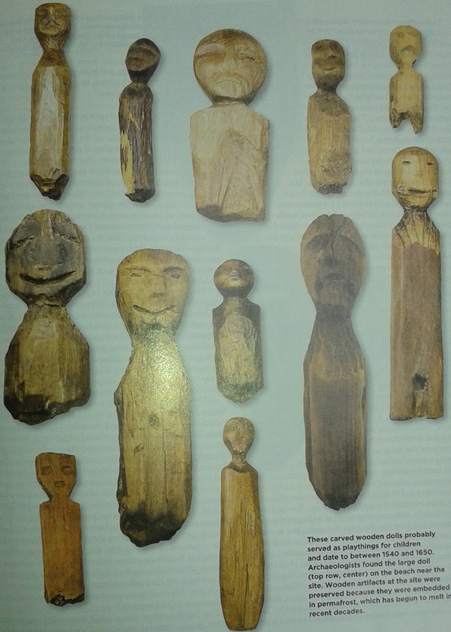 Excavations near Quinhagak, a Yup’ik village in Alaska have yielded many important items from the Yup'ik ancient past including carved wooden human figures some of which are very similar to the Shigir Idol and Holy Ghost Panel Figures. The site has been dubbed Nunalleq, which means